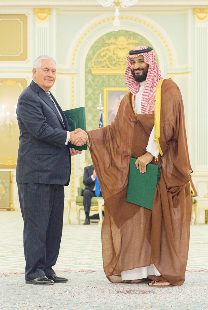 ولي ولي العهد وزير الدفاع الأمير محمد بن سلمان بعد توقيعه اتفاقا مع نظيره الأمريكي .