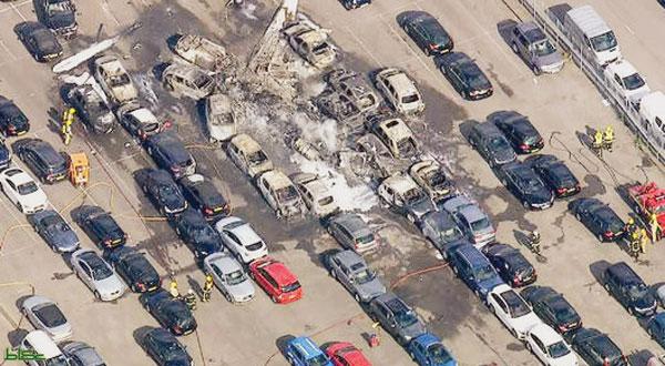 من جهتها، نشرت صحيفة «ديلي ميل» البريطانية، صورا لاصطدام وتحطم الطائرة فوق مستودع لبيع السيارات بالقرب من مدينة فارنبورو في بريطانيا.