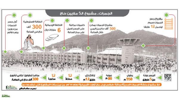 والمشروع الذي تم إنجازه خلال الفترة من 1427 – 1431هـ يمكن أكثر من 500 ألف حاج من رمي الجمرات خلال ساعة واحدة ومن ثم تيسير أداء هذا النسك لجميع الحجاج بكل يسر وسهولة.