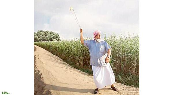 ويظهر في الصورة، التي التقطها المصور الفوتوغرافي عادل الدغريري، أحد مزارعي المنطقة العم علي حاج مدخلي من أهالي قرية الركوبة بمحافظة صامطة وهو يقوم برمي الطيور لإبعادها من حقله الزراعي.