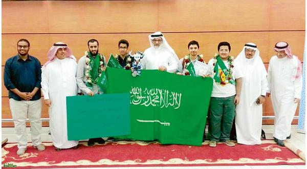 وفور دخولهم صالة المطار استقبلوا بأعلام وشعارات الوطن والورود، احتفالا بإنجازهم الوطني المشرف الذي تضمن تفوقهم ببطولة الروبوت في المسابقة التي شاركت فيها 50 دولة بأكثر من 400 روبوت.
