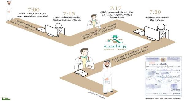 «عكاظ» تحصل على «إجـازة مرضية» في 5 دقائق .. بـ50 ريالاً!