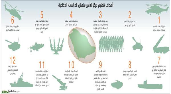 جاء قرار مجلس الوزراء أمس الأول (الإثنين) بالموافقة على تنظيم مركز الأمير سلطان للدراسات والبحوث الدفاعية، بهدف تعزيز ودعم توجهات المملكة الدفاعية والأمنية من خلال إجراء وتطوير البحوث النوعية التقنية المرتبطة بالمجالات الدفاعية والأمنية والإستراتيجية، وتكشف الخطوة التنفيذية لمجلس الوزراء حالة النضوج السياسي العسكري الدقيق لحكومة 2030، ويتزامن إشهار المركز مع حديث ولي ولي العهد الأمير محمد بن سلمان على هامش إطلاق الرؤية 2030 وأبدى خلاله «استغرابه من عدم وجود صناعة عسكرية، رغم أن المملكة ثالث أكبر دولة في الإنفاق العسكري»، ومعلناً أنه «سيتم إنشاء شركة قابضة للصناعات الحكومية وستطرح لاحقاً في السوق نهاية 2017، وأنها ستمكّن المواطن من الاطلاع على الصفقات العسكرية بشكل واضح».