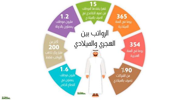 وأشار الرقيب إلى أن الدولة رغم إعداد ميزانياتها وفقا للتاريخ الميلادى، إلا أنها تصرف رواتب موظفيها بالتاريخ الهجرى، وإذا كانت الشركة لديها مثلا 2000 موظف متوسط رواتبهم 5000 ريال فإنها تستطيع توفير ما قيمته 3.67 مليون ريال في السنة الواحدة، كما أن الشركات لا تصرف الرواتب إلا في نهاية الشهر يوم 31 أو في اليوم الأول من بداية الشهر التالي لاستحقاق الراتب؛ كي لا تفقد أياما عندما يترك الموظف الخدمة قبل نهاية الشهر.