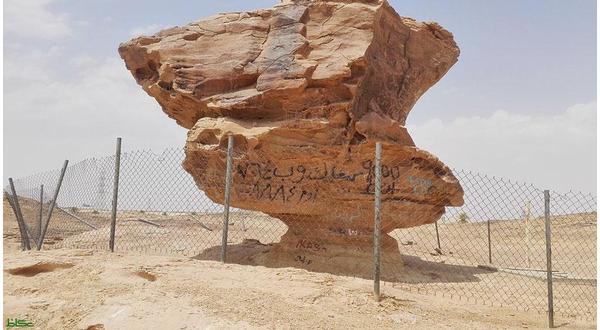 وقال عبدالعزيز العمرو من أهالي محافظة عيون الجواء «هناك كثير من الزوار لمنطقة القصيم سواء من داخل أو خارج المملكة يحرصون على زيارة الصخرة والتي تتشكل من حجرين كبيرين والتصوير بقربهما، خصوصا بعد أن أصبح الوصول إليهما سهلا جدا الآن، عن طريق حائل القصيم الجوف السريع الذي لا يبعد سوى 100 متر عنهما ولكن الموقع يعاني من الإهمال والعبث، رغم الجهود السابقة التى بذلت من أجل المحافظة على الصخرة». لافتا إلى أنه من الممكن إنشاء حديقة واستراحة للعابرين عبر الطريق الدولي القصيم - حائل - الجوف.