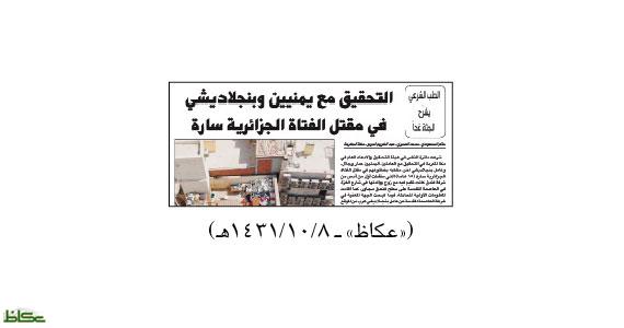 وكانت محكمة مكة صادقت على أقوال اليمنيين المتورطين في قضية سقوط الفتاة الجزائرية سارة التي قضت إثر سقوطها من مبنى سكني في العاصمة المقدسة ، واللذين اعترفا شرعا بملاحقتها.