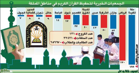 وفي إحصائية سريعة؛ هناك بون شاسع بين عدد الطلاب الملتحقين بحلقات تحفيظ القرآن الكريم في بداية إنشائها، وبين الأعداد الهائلة الآن، ومن خلال إحصائية عام 1431هـ للإدارة العامة للجمعيات الخيرية لتحفيظ القرآن الكريم، فإن الجمعيات في مناطق المملكة تحتضن ما يقرب من 657 ألف طالبة وطالب، و 131 فرعا، و32 ألف حلقة قرآنية.