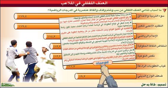 والمعروف في كل قوانين العالم أنه عندما تتفشى ظاهرة سلبية في المجتمع فإن الجهات المعنية تحاول أن تبحث عن أسباب هذه الظاهرة وتعالجها للحد منها، فالعنف اللفظي في الوسط الرياضي السعودي بات ظاهرة ملموسة رغم غياب الدراسات والأبحاث الدقيقة التي توضح الأسباب وتعطي مؤشرات للحلول.