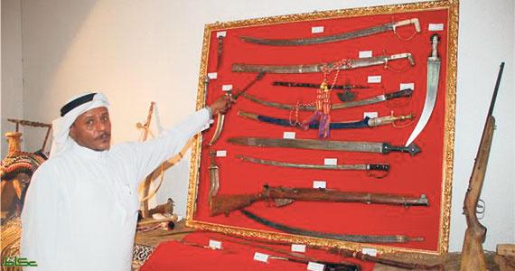 فتح عبدالعزيز سليمان العبيد منزله أمام الجمهور في مدينة عرعر لزيارة متحفه الخاص الذي يضم كثيرا من القطع التراثية داخل منزله.