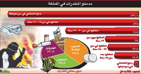 وبين أن قرابة ثمانية في المائة من المبحوثين بدأوا التعاطي وهم دون سن الثالثة عشرة، في حين أن من تعاطوا المخدرات أو المسكرات وهم لازالوا في سن بين 14 و61 عمرهم بلغت نسبتهم 28 في المائة، مشيرا إلى أن هذه النتيجة توضح أن الأطفال معرضون لخطر التعاطي بنسبة يمكن تقديرها بتسعة في المائة، في حين أن المتحولين من عالم الطفولة إلى عالم المراهقة معرضون لخطر التعاطي بنسبة 28 في المائة.