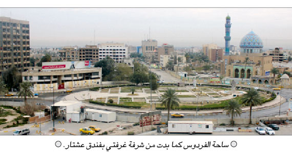 عند الخامسة والنصف عصرا، وبعد دقائق من وقوفي على شرفة فندق عشتار بغداد شيراتون والتأمل في ساحة الفردوس والحركة حول العمود الذي أسقط الأمريكان منه التمثال البرونزي لصدام حسين إيذانا بسقوط نظامه في أبريل 2003م، أبلغني المنسق الإعلامي هاتفيا برغبة مستشار رئيس الوزراء في لقائي بقصر الضيافة في المنطقة الخضراء عند الساعة السابعة مساء، ففزعت وتأهبت للموعد، منتظرا السائق في البهو قبل نصف ساعة من الموعد.