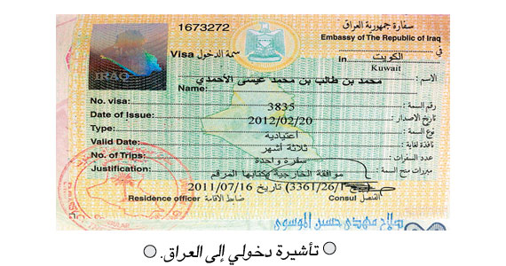 تلقت السفارة العراقية في الكويت توجيها من مكتب رئيس الوزراء بمنح «الصحفي السعودي» تأشيرة دخول اعتيادية، عندها قدم لي القنصل استمارة أملؤها بكافة تفاصيل الهوية وجواز السفر وأسباب الزيارة، ووسيلة الوصول إلى بغداد. وسألني الموسوي: هل ستسافر برا من الكويت إلى بغداد عبر منفذ صفوان لمدة أربع ساعات ونصف الساعة؟ أم إلى مطار بغداد مباشرة عبر مطار دبي الدولي؟ وقع اختياري على السفر جوا من خلال الإمارات. فاستوفى القنصل كافة البيانات المطلوبة، وأخذ الاستمارة والجواز لاعتماد التأشيرة من السفير، لكن السفير طلب لقائي مباشرة.