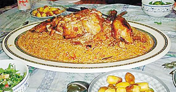 الكبسة: وهي عبارة عن الأرز باللحم أو الدجاج أو الربيان حيث يتم طبخ لحم الغنم أو الدجاج أو الربيان مع الزيت والبصل والبهارات والملح والطماطم والصلصة الحمراء والهيل والزعفران والقرفة ثم يضاف الماء والأرز بعد غسله وتنقيعه في الماء الساخن ويترك لينضج ثم يضاف إليه الزيت والزبيب.