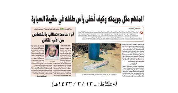 طالب المدعي العام في هيئة التحقيق والادعاء العام في مكة المكرمة بالقتل تعزيرا لوالد طفل الشرائع الذي أزهقت روحه قتلا على يده قبل نحو شهرين في الحادث الذي عرف بجريمة الشرائع. جاء ذلك بعد اطلاع المدعي العام على كافة أوراق القضية وحيثياتها بعد تسجيل اعترافات المتهم وتوثيقها رسميا، إذ جاءت في إفاداته أنه قتل ابنه ثم نحره داخل فناء منزله ثم ألقى جثته قرب مرمى نفايات في الحي الشهير. وطبقا لحيثيات الجريمة التي هزت مختلف الأوساط في مكة المكرمة، فإن الأجهزة الأمنية عثرت على جثة طفل مفصول الرأس وتحفظت عليها لنحو 4 أيام قبل أن يتقدم رجل مسن إلى شرطة الشرائع مفيدا عن اختفاء حفيده الذي خرج مع والده ولم يعد. واستدعت الأجهزة الأمنية الأب وأخضعته للتحقيق وكشفت التحريات تورطه في قتل ونحر نجله واحتفاظه بالرأس المفصول داخل حقيبة سيارته وسجل المتهم اعترافات رسمية بالواقعة وأحيل إلى السجن العام.