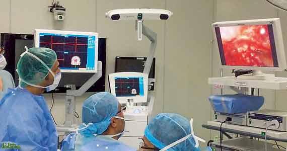 ولفت إلى أن جميع هذه الأدوات يتم استخدامها عن طريق فتحتي الأنف، ومن ثم يتم تدخل جراح المخ والأعصاب للتعامل مع الورم واستئصاله بأدوات خاصة عن طريق الأنف، ويتبع ذلك حشو منطقة الحفر بقاع الجمجمة بأنسجة وعظام من داخل تجويف الأنف يتم تحويلها إلى منطقة الحفر عبر تقنية خاصة وذلك بواسطة طبيب جراحة مناظير الانف، ومن ثم الوصول إلى حالة الانفصال الطبيعية بين تجويفي الانف والمخ.