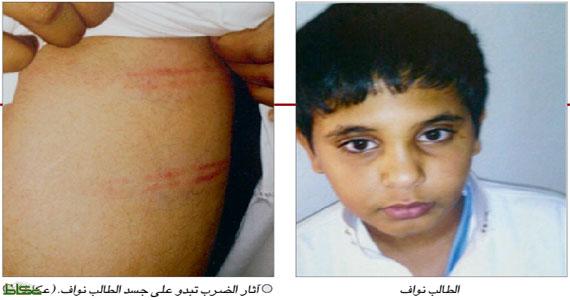 وأبلغ «عكاظ» وليد الطلحي شقيق الطالب، اللذان فقدا والدهما قبل سنوات في حادث مأساوي على طريق السيل، قائلا إنه تقدم بشكوى لإدارة التعليم يتهم فيها وكيل المدرسة بالاعتداء بالضرب على شقيقه نواف 13 عاما مستخدما في ذلك عصا خيزران غليظة، موضحا أنه تفاجأ عند زيارته لشقيقه في المستشفى الذي نقل إليه من شدة الضرب، حيث كان أثر الضرب المبرح الذي مزق جسده شاهدا على قسوة الوكيل، مبينا أن السبب يعود لتأخر (نواف) في دورة المياه بعد أن استأذن للذهاب إليها، لافتا أنه حصل على تقرير طبي يمنح فيه (3) أيام مدة للشفاء.
