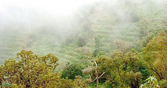 خضرة وجبال مع الضباب