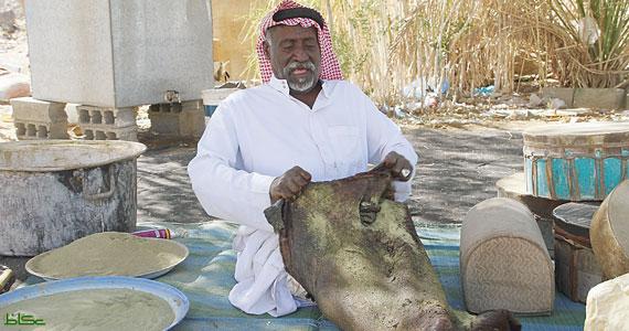 في المقابل التقت «عكاظ» بالمواطن مخفور سعد اليامي والمتخصص في دباغة الجلد حيث كان متواجدا في سوق أبا السعود لبيع جلود مدبوغة على من يقومون بصناعتها لبعض المنتجات وتحدث أنه تعلم هذه المهنة عن طريق آبائه وأجداده وأنه لا يوجد من يساعده سوى زوجته في منزلهم الخاص، مؤكداً أنه يحرص على المشاركة في مهرجان الجنادرية والذي يعد الوحيد الداعم لهم في بيع منتجاتهم.