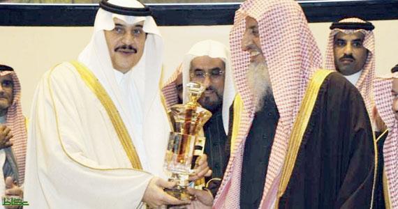 جاء ذلك خلال رعاية سموه للحفل التكريمي الثالث للجائزة في دورتها الثانية بحضور مفتي عام المملكة رئيس هيئة كبار العلماء وإدارة البحوث العلمية والإفتاء الشيخ عبدالعزيز بن عبدالله آل الشيخ، حيث كرم سموه «برنامجين دعويين، وجامعين، وثمانية خطباء، وداعية واحد». وأضاف سموه خلال كلمته في الحفل: «نحن نلمس آثار ذلك في موازنة الخير، كما لمسنا دلائله في اللحمة الواحدة لفرحة المجتمع أجمع، على ما أنعم الله به على سيدي خادم الحرمين الشريفين الملك عبدالله بن عبدالعزيز (حفظه الله) من نجاح للعملية الجراحية التي أجريت لمقامه الكريم (حفظه الله ومتعه بدوام الصحة والعافية) تلك الفرحة التي عمت الجميع لما يتبوأ من مكانة عالية في قلوب الجميع (أيده الله بالعز والتمكين وسمو سيدي ولي عهده الأمين).