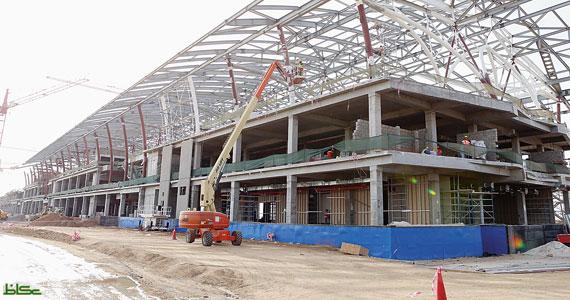 وكانت «عكاظ» قامت أمس بجولة على المشروع الذي تجاوز أعمال الأساسات وبدء المرحلة الأهم وهي تركيب السقف الحديدي لصالات المغادرة الدولية إلى جانب تنفيذ البرج الذي يبلغ ارتفاعه 136 مترا عن سطح الأرض.