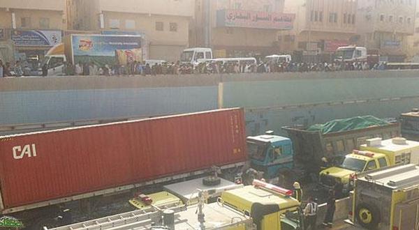 وفي ذات السياق، تسبب حادث مروري وقع صباح أمس بين شاحنتين متجهتين لميناء الملك عبدالعزيز بالدمام في إغلاق الطريق المؤدي إلى الميناء أمام الحركة المروية لأكثر من ساعتين، ما أدى لاصطفاف الشاحنات والسيارات لمسافة تتجاوز الكيلو متر .