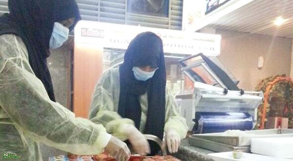 تقف 13 فتاة سعودية مرتديات قناعات صحية ويعملن في نشاط حول خطوط الإنتاج في أول مصنع نسائي في المملكة جرى إطلاقه في المدينة المنورة، لصنع الأطعمة للمدارس وبيوت الأفراح والمناسبات .