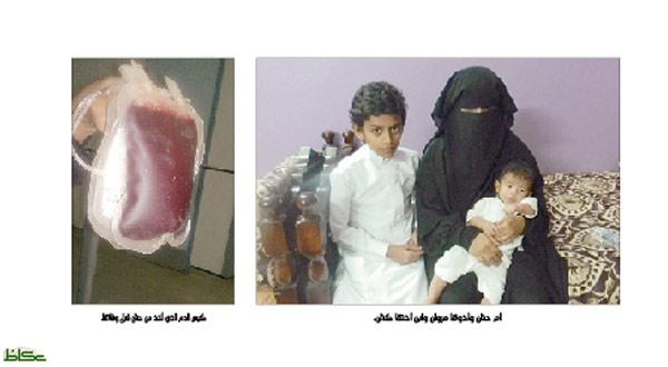 هدى أطلعت «عكـاظ» على آخر صورة التقطتها حنان وبعثت بها إليها لكي تريها مقدار الدم الذي سحبوه منها، حيث كانت الصورة عبارة عن أكياس دم تم سحبها منها قبل تخديرها.