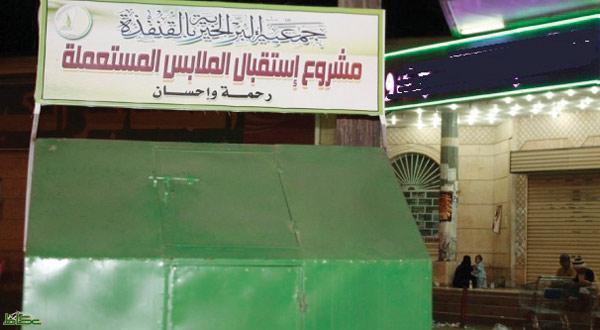 شرعت جمعية البر الخيرية بمحافظة القنفذة بتدشين مشروع استقبال وجمع الملابس المستعملة الزائدة على حاجة الاهالي، وذلك بتخصيص أربعة صناديق خيرية مجهزة، وموزعة في عدة أماكن هي صندوق المتاجر الكبرى بجوار محكمة القنفذة، وصندوق مسجد الأميرة بجوار سوق الهنيدي العام، وصندوق مسجد الجامع الكبير بحي اليمانية، وصندوق مقر جمعية البر الخيرية بمحافظة القنفذة الكائن بحي الخالدية. وأكد أمين عام الجمعية أحمد الخميسي أن هذا المشروع خصص للاستفادة من تلك الملابس لصالح الأعمال الخيرية للمستفيدين من مشاريع وبرامج الجمعية.
