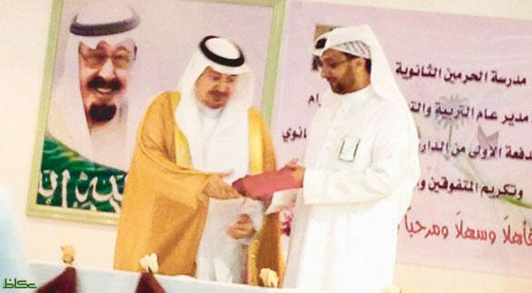 كرم مدير عام التربية والتعليم في محافظة الطائف الدكتور محمد بن حسن الشمراني، مدير ثانوية الحرمين في حي العنود، فهد العوفي نظير جهوده في تعليم الكبار، بحضور مدير إدارة تعليم الكبار في الطائف عبدالعزيز بن جار النبي السيالي السعدي.