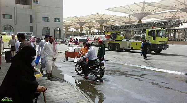 أصيب إطفائيان من الدفاع المدني خلال إخماد حريق اندلع صباح أمس في فندق الأنصار الذهبي الواقع جوار الحرم النبوي.