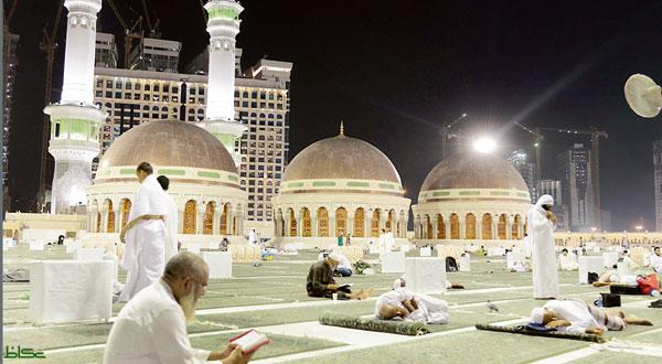 في أروقـة الحرم المكي الشريف تجد أنين وأصوات المعتمـرين وهم يتلون القرآن الكريم في سباق مع الوقت لختم القـرآن الكريم خلال شهـر رمضان المبارك بجوار بيت الله الحرام. وقال محمد إدريس أحد المقيمين وقد تجاوز الثمانين: إنني في شهـر رمضان أحرص على ارتياد المسجد الحرام وأداء جميع الصلوات فيه إضافة إلى التـراويح والتهجد، وتعودت منذ أكثر من «35» عاما على ختـم القـرآن الكريم كل خمسة أيام في المسجد الحرام، وقال: لم أجد الراحة النفسية والسعادة إلا في جلوسي في الحرم وتدبري لكتاب الله تعالى وقـراءته..