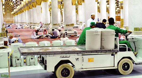 تقتصر أعمال الخير في شهر رمضان المبارك، على إعداد وتنظيم موائد الرحمن لإفطار الصائمين في الحرم النبوي الشريف، بل يمتد طلب الأجر والصواب إلى توزيع وجبة السحور على المعتكفين والمعتكفات وزوار مسجد الرسول صلى الله عليه وسلم، حيث تصطف عشرات المركبات في العشر الأواخر من الشهر الفضيل تحمل أصنافا من المأكولات والعصائر، لتوزيعها على المعتكفين قبل أذان الفجر، حيث يتخذ فاعلو الخير من مواقف المركبات القريبة من المسجد النبوي الشريف مكانا لتجهيز الموائد، فيما يلجأ، بعض المعتكفين بالحرم النبوي الشريف إلى دفع مبالغ مالية لبعض الأطفال في ساحة الحرم لجلب وجبات غذائية من المطاعم الواقعة في محيط المنطقة المركزية بمقابل مادي، فيما تقدم بعض المطاعم وجبات غذائية مجانا للمصلين وبعد المعتكفين مقدمة من فاعلي الخير.