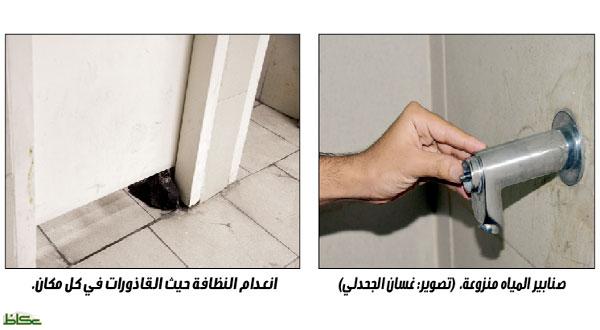 فيما أكد جبريل المالكي، أن مشكلة دورات المياه في الكورنيش الجديد ما تزال قائمة منذ فترة طويلة، حيث تفتقر للصيانة الدورية وعدم توفر المياه وسوء الاضاءة مشيرا إلى معاناة المتنزهين خاصة عندما يحين موعد أوقات الصلاة، حيث تلاحظ جمعا من الناس أمام تلك الدورات في حالة انزعاج شديد إما بسبب عدم توفر المياه، او بسبب قذارة الحمام أو بسبب عبث العابثين فيها وتدمير كل صنابير المياه، أو الأبواب التي تم نزع الأقفال منها حتى من اللوحات الإرشادية التي تدل نوع المستخدمين للدورة، للرجال أم للنساء، قد نالت نصيبها من العبث.