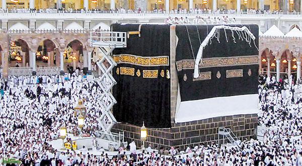 وبعد الانتهاء منها تتم عملية رفع ثوب الكعبة المبطن بقطع متينة من القماش الأبيض وبارتفاع نحو مترين من شاذوران القاعدة الرخامية للكعبة والمعرفة بعملية إحرام الكعبة.