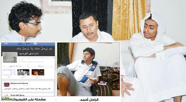 وصدق حدس الفقيد عندما كان هو الضحية الوحيد في الحريق الضخم.. «عكاظ» التقت والده والذي تحدث عن ابنه البكر بكلمات يملؤها الحزن على فقدان فلذة كبده الذي كان يحمل على عاتقه مسؤولية المنزل ومساعدته على الاهتمام بجميع متطلبات المنزل، قائلا: «كان أحمد هو الابن والأخ والمعين والمساعد لإخوته، حيث لقي حتفه رحمه الله بعد أن ذهب بشقيقته الصغرى إلى المدرسة». وأضاف: «قبل أن يخرج أحمد من المنزل قال لي (مع السلامة) أحسست للوهلة الأولى أنه لن يعود مرة أخرى إلي»، والدموع تحبس أنفاسه أضاف: «قدر الله وما شاء فعل».