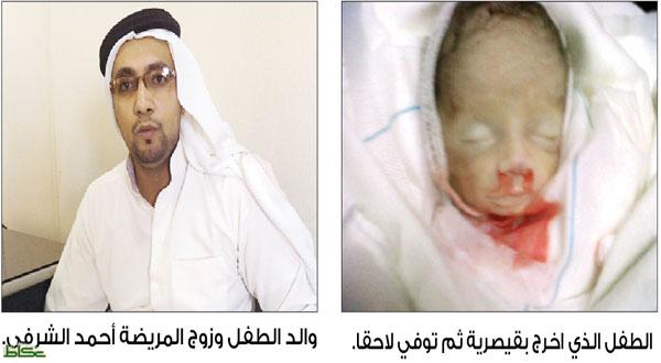ناشد أحمد علي الشرفي الجهات المختصة بالتحقيق في أسباب وفاة طفله الأول خلال عملية ولادته في أحد المستشفيات الحكومية في القصيم، إضافة إلى تدهور صحة زوجته أماني عبد الجليل ومعاناتها من مضاعفات بعد أن خضعت لثـلاث عمليات جراحية.