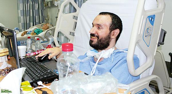 وألمح إلى أنه بعد أن مكث في النقاهة 10 سنوات جرى تحويله إلى العناية الخاصة، مع مرضى شبه أموات، خصوصا أن الضمور وصل لجهازه التنفسي وبات يعتمد على الأجهزة في التنفس، موضحا أن يقضي وقت فراغه في المستشفى بتصفح المواقع الاجتماعية، ليكسر العزلة التي يعيشها، ويحتك بالعالم الخارجي.
