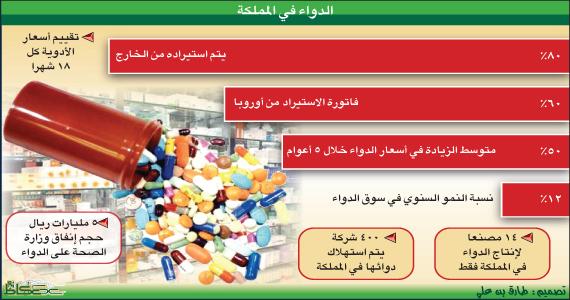 وكشف عدد من المتعاملين في سوق الأدوية المحلية أن مصانع الأدوية السعودية تغطي فقط 25 في المائة من احتياج سوق الأدوية محليا، فيما يتم تعويض الـ75 في المائة المتبقية عن طريق الاستيراد من الخارج.