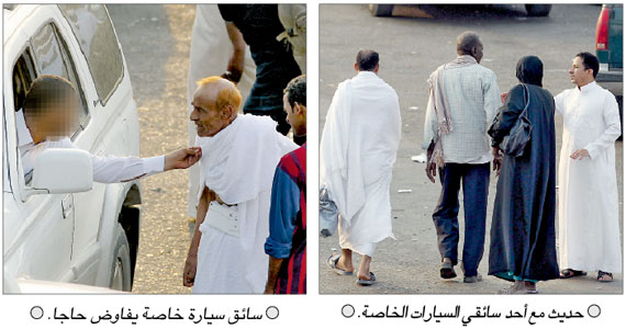 من جهة أخرى، تم التفاوض مع أحد الكدادين للذهاب إلى المشاعر المقدسة وأول سؤال طرحه علي: «هل أنت نظامي وتملك تصريحا؟» فأجبته بالنفي فقال السعر 250 ريالا، ويجب أن أنتظر حتى يكتمل العدد لديه وسألته ما إذا حدث أمر طارئ أثناء الطريق وأقصد أن يتم القبض علينا، لكنه عاجلني أنه سوف ينزلني في شارع الستين بمكة المكرمة.