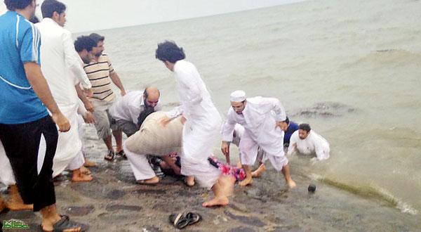 وكان مواطن وأسرته في نزهة بحرية على الشاطئ فيما ظلت امرأة تنتظرهم داخل السيارة وفي تلك الأثناء تدحرجت المركبة وسقطت في البحر وعلى الفور هرع أفراد أسرتها والمتنزهون وأنقذوها قبل أن تغرق.