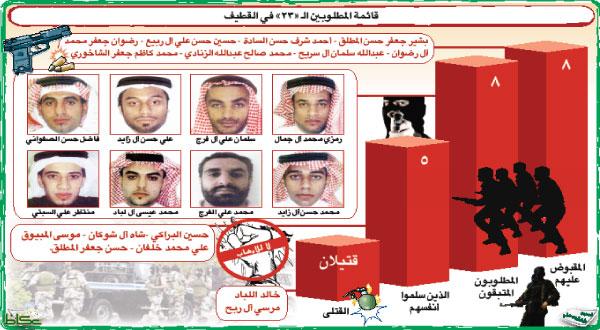 قائمة المطلوبين الـ23 في القطيف تتقلص إلى 8