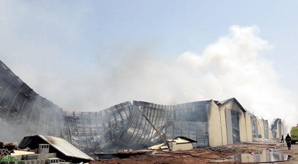 اندلع حريق هائل أمس في 10 مستودعات للأدوات البلاستيكية والمعدنية في حي الخالدية بالدمام وعلى الفور باشرت 20 فرق متنوعة الاختصاص من الدفاع المدني بالدمام الموقع ولا تزال الفرق تعمل على إخماد الحريق والسيطرة على النيران ومحاصرتها حتى إعداد الخبر، فيما قام العاملون في الموقع بإخراج الأدوات البلاستيكية والمعدنية والرافعات ومحتويات المستودعات لمنع امتداد الحريق وانتشاره في الموقع.