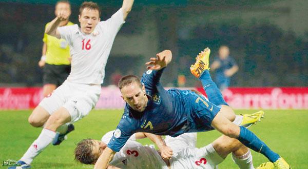 وحظيت فرنسا أيضا بليلة جيدة إذ وضعت حدا لغيابها عن التسجيل في خمس مباريات متتالية في فوزها 4-2 على روسيا البيضاء رغم أنه تعين عليها تحويل تأخرها مرتين قبل أن تنتصر بأهداف سمير نصري وبول بوجبا وثنائية من فرانك ريبري بينهما هدف من ركلة جزاء.
