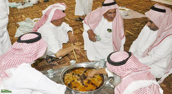 وبين الألمعي أن هناك أكلات شعبية في رجال ألمع تعد الأشهر على مستوى منطقة عسير ومنها الحنيذ والعريكة والمقاصف والفتة والعصيدة. وأشار إلى أن الفتة ما زالت حاضرة في كافة المناسبات التي تقام في القرية أو في رجال ألمع، وقال إن عملية اعدادها وتقديمها تعتبر سهلة حيث تقوم نساء القرية بوضع خبز الذرة أو الزعر في التنور حتى ينضج، ومن ثم يؤخذ المرق من على اللحم وتضيفه على الخبز ثم تقوم بتقطيعه قطعا صغيرة، ثم تبدأ في هرسها بالمهراس، ثم يضعن عليها اللحم ويرش بالمرق وعليه بعض من اللحم السمين والبصل (نصف محروق)، ويقدم مع الحلبة بنوعيها (الحلو والحامض) وهي مشهورة في رجال المع وتوضع في أدوات من الفخار ومن ثم تقديمها للضيوف.