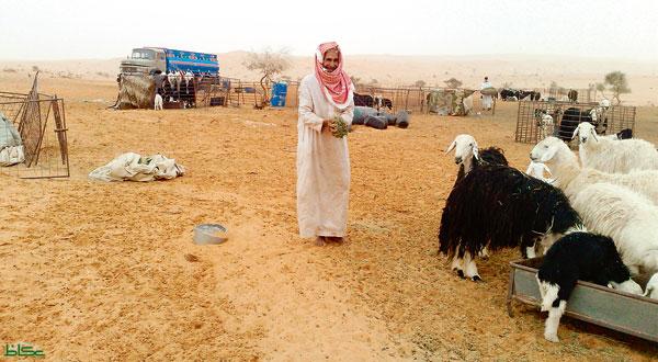 سألناه عن سبب ذلك فقال: ولدت في الصحراء وأعيش فيها وسأموت بها، لم أتزوج طوال عمري فأنا (عازب الصحراء)، لا أحب المدينة رغم أهميتها، أعشق أن أعيش هكذا، أنام مبكرا بعد صلاة العشاء، أسمع الأخبار في الراديو حتى أعرف أخبار العالم، وأستيقظ قبل أذان الفجر وأعد القهوة العربية مع التمر، وأشرب الحليب ثم أبدا يومي برعي أغنامي التي هي مصدر رزقي.