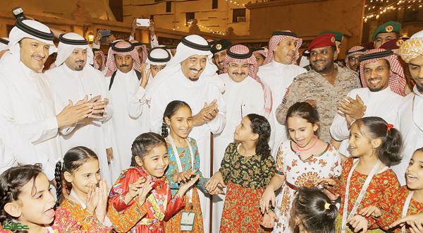 وشدت أصوات أطفال يرددون: «طاق طاق طاقية» ولي العهد وفي طريقه صوب بيت نصيف التاريخي حيث وقف على رؤوس أطفال يجسدون حقبة من التاريخ وهو يداعبهم عن تلك اللعبة الشهيرة ويلاطفهم، فيما كان في الجهة الأخرى صوت الفتيات يتعالى وهن يلعبن لعبة المناداة الشهيرة «يا بابا يا بابا» وثم توجه صوبهن ولي العهد باسما ضاحكا ومصفقا لهن في لحظة تشجيع ما جعل الحاضرين يحيون المشهد الأبوي بصوت عال.