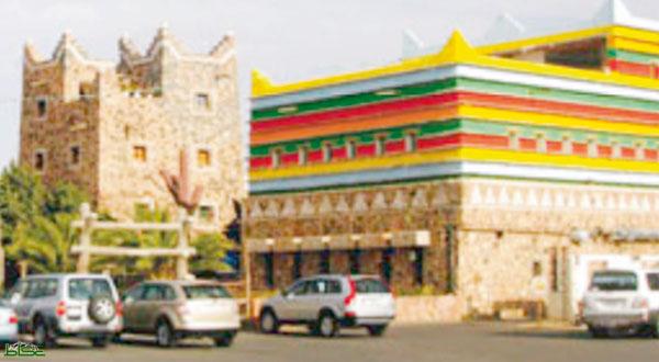 وزين أعلاه الإطار الأبيض العسيري والمميز لأبنية الحجارة العسيرية.