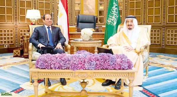•• وكان خادم الحرمين الشريفين الملك سلمان بن عبدالعزيز قد استقبل في الرياض فخامة الرئيس المصري عبدالفتاح السيسي بتاريخ 1/ 3/ 2015م وأثمر اللقاء الهام عن تأكيدات سعودية واضحة على مصيرية العلاقات بين البلدين.. وتواصل دعم المملكة للشقيقة مصر.. وتطلعاتها إلى المستقبل الذي ينشده الشعب المصري الذي يحظى بكل الاحترام والمحبة والتقدير من المملكة قيادة وشعبا..