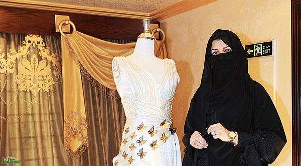وتعد المصممة عبير أفغاني أول سعودية تبتكر تصميم هذا الفستان وقد استخدمت فيه خامات فرنسية الصنع من التفتاه والدانتيل الفرنسية وجميع الخيوط التي تم تطريزه بها من الحرير الطبيعي فائق الجودة ورؤية الفستان للوهلة الأولى تجعلك تحلقين معه في عالم من الأحلام بداية من التصميم الانسيابي، خاصة في منطقة الخصر، التي تم تطعيمها بالسلاسل الذهبية الرقيقة من موديل كارتيه وكذلك منطقة الظهر ثم رصعت المناطق الأمامية والخلفية للفستان بقطع ذهبية على شكل نجوم، أما ما زاد من رونق الفستان فكانت الفراشات التي تم تفريغ أجنحتها حتى إذا وقع عليها الضوء فإنها تبدو وكأنها شعاع ذهبي صادر منه وهذا الفستان يمكن أن تستخدمه العروس، كما يمكن أن يكون فستان سهرة وهو من مقاس رقم 8 ويمكن تعديله إلى مقاس رقم 10، وقد استغرق تركيب القطع الذهبية التي صنعت خصيصا لهذا الفستان 25 يوما وتتشكل من 102 نجمة جميعها بمقاس واحد و18 فراشة بمقاسات مختلفة و28 قطعة من السلاسل وتم استخدام الأخيرة على صدر وظهر وأكتاف الفستان وقامت بالعمل فيه عاملات يملكن المهارة والخبرة في هذا المجال وقد تجاوزت قيمة هذا العمل بمواده الخام أكثر من 240.000 ريال، ومن تقتني هذا الفستان تحصل معه على شهادة بقيمة الذهب الموجودة به، وقد أبدت سيدات الأعمال انبهارهن من جمال تصميمه ودقة تصنيعه، كما أنه يعد الأول على مستوى المملكة العربية السعودية، الذي تتم صناعته كاملا بتصميم سعودية وداخل المملكة، الأمر الذي يؤهل هذا العمل للدخول في موسوعات المشاهير.