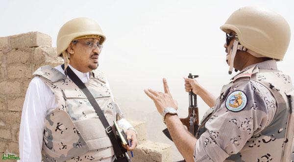 كدت أن أعود أدراجي، خاصة بعد أن توقف قائد السيارة لأكثر من مرة بسبب وعورة الطريق، لكن قناعتي بأن هناك رجالا أشاوس يعبرون الطريق يوميا، ويضعون أرواحهم فداء للوطن، مرات في رحلات الذهاب والإياب، ومرات أخرى في البقاء فوق الجبال في خط المواجهة، جعلني ثابتا. وبعد نصف ساعة من الحذر والترقب، وجدنا انفسنا أمام رجال بواسل حملوا فوق اكتافهم الاسلحة المختلفة وتمترسوا كل في موقعه تحت قيادة قائدهم الملازم أول عبدالاله المطيري، وفيما كنا نمني انفسنا بأخذ قسط من الراحة لإراحة ضلوعنا التي لم يبق فيها ضلع واحد إلا وقد اهتز من شدة التأرجح، بفعل هزات السيارة، واذ بأزيز الطائرات واصوات المدافع تنطلق، فيما كانت الشجاعة هي سيد الموقف لأفراد حرس الحدود، والذين لم يرمش لهم جفن، كل في موقعه يتابع أي تحركات طارئة قد تحدث، خاصة أن العقيد شراحيلي، أكد أن هذه المنطقة تعتبر من أخطر المناطق في الدائر، مضيفا: هذه الاصوات التي سمعتها هي اصوات الحق تتصدى لأبواق الباطل فالحوثيون امامنا هنا خلف هذا الجبل ولو قدر لهم أن يجتازوه لما ترددوا أبدا لكنهم يعرفون أنهم سيجدون رجالا بواسل لا يترددون ابدا للدفاع عن وطنهم بكل ما يملكون.